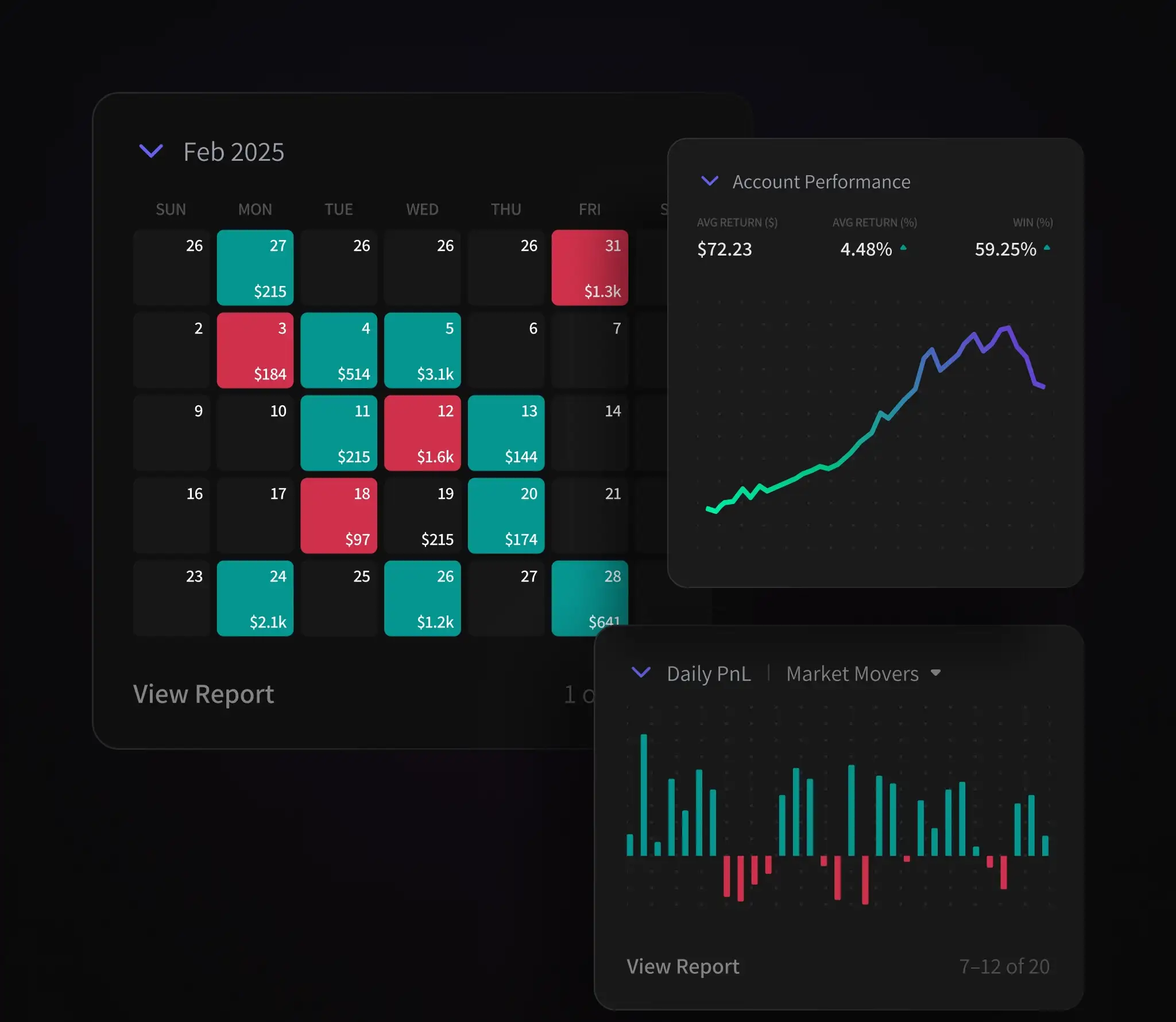 Analyze your trades from every angle with TraderSync’s powerful analytics. Customize reports to reveal patterns by time, asset type, market conditions, and more.